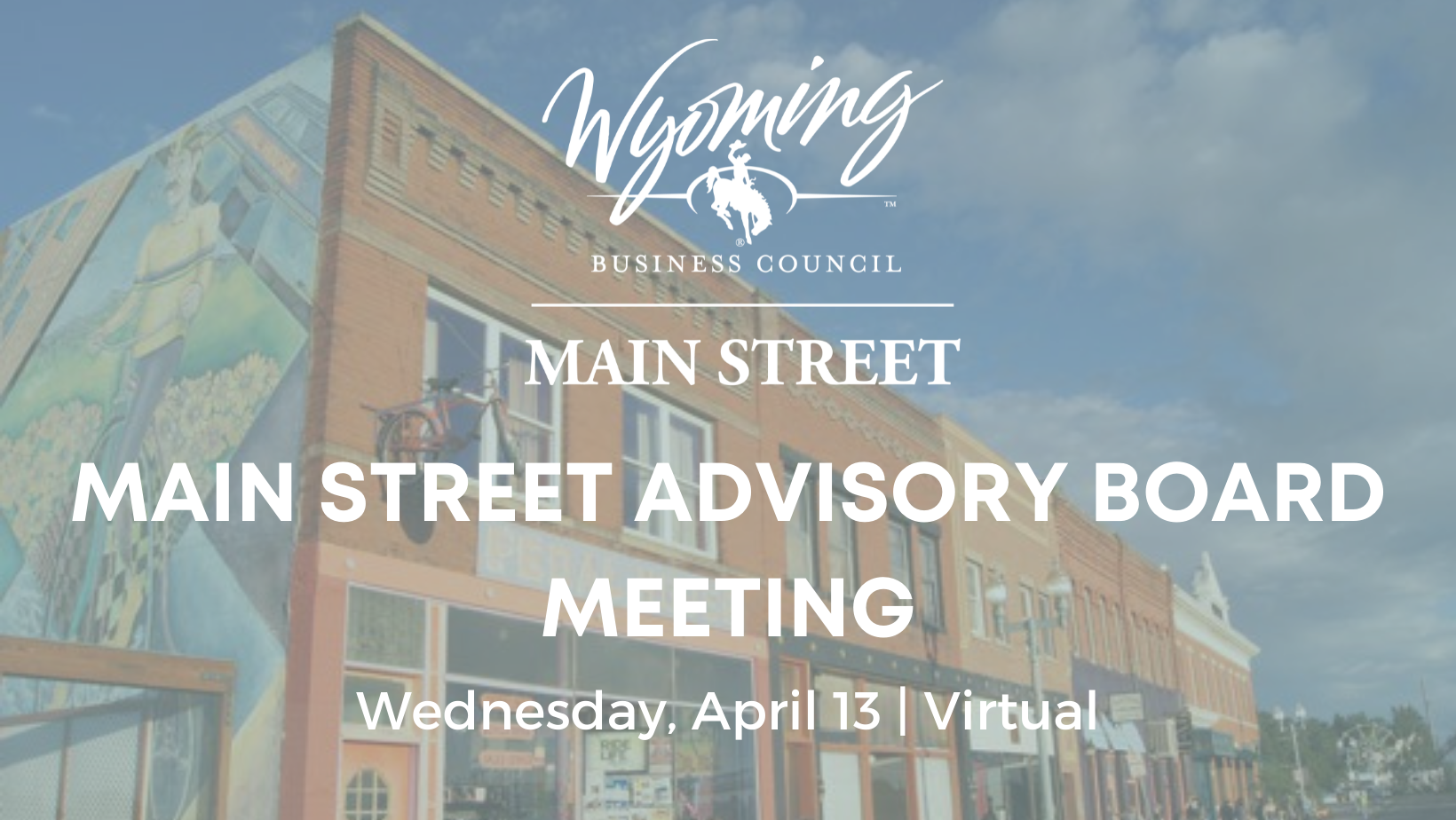 The Wyoming Main Street Advisory Board will meet via Zoom for a work session on Wednesday, April 13, from 8 to 10 a.m.